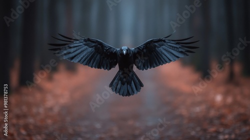 © nalinee, Naklejka premium Majestic Crow in Enchanted Forest Setting