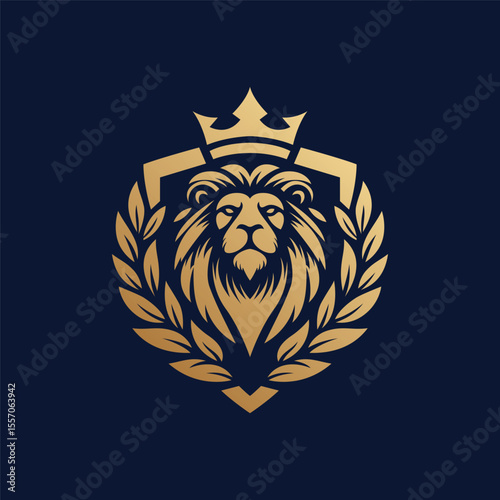 Fototapeta premium Majestic Crowned Lion with Leaf Ornament Logo