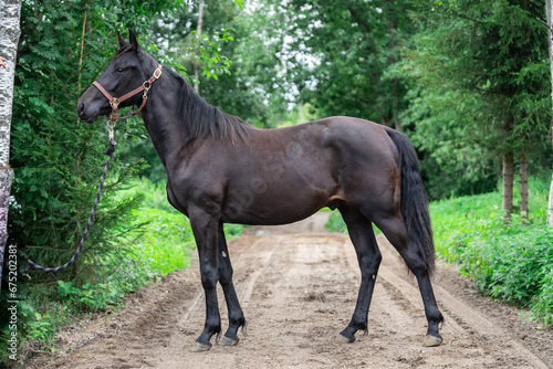 Obraz premium Majestic Dark Horse Amidst Lush Green Landscape