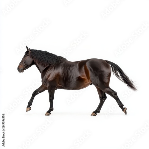 © aun, Obraz premium Majestic Dark Horse Trotting Gracefully Against White Background