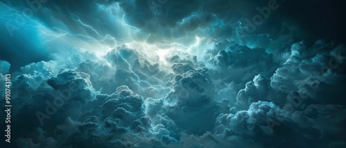 Fototapeta premium Majestic Dark Storm Clouds with Lightning Flashes in Dramatic Sky