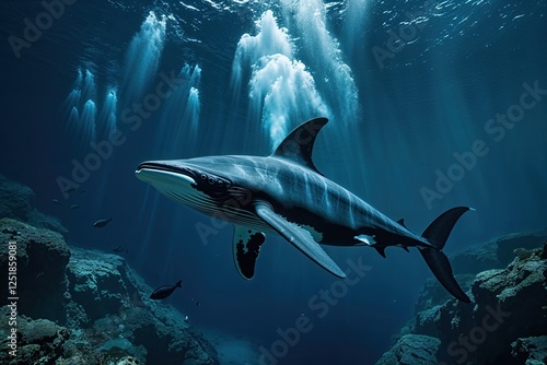 Fototapeta premium Majestic Deep Sea Creatures Swim in the Mysterious Mariana Trench