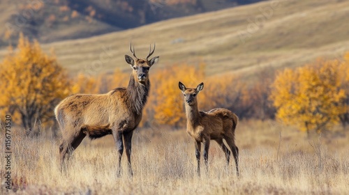 © Yeivaz, Naklejka premium Majestic Deer Couple in Autumn Meadow