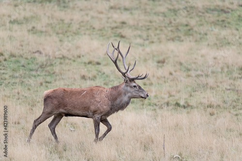 © Manuel, Fototapeta premium Majestic deer cross prairie (Cervus elaphus)