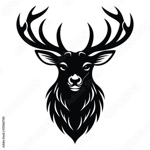 © Sadia, Fototapeta premium Majestic Deer Head Silhouette Vector, Elegant Black Deer Icon Collection, Reindeer Logo, and Wildlife Symbol on a Clean White Background
