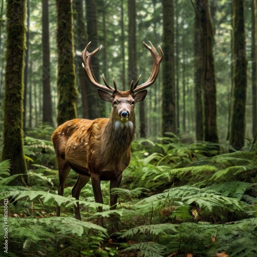 © Rahmat, Fototapeta premium Majestic deer in a lush forest.
