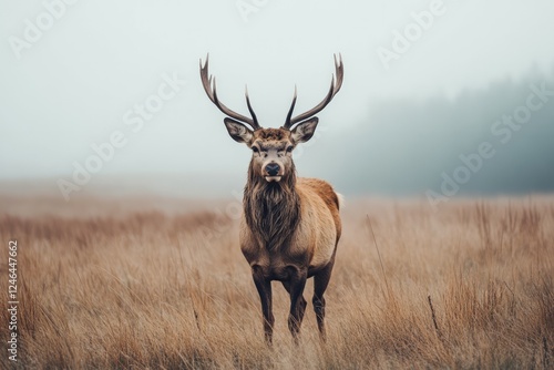 © Viktor, Obraz premium Majestic deer in autumn forest with soft focus. AI generated