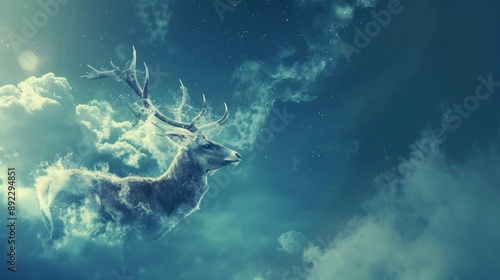 © PalaG, Obraz premium Majestic Deer Silhouette with Antlers in the Sky