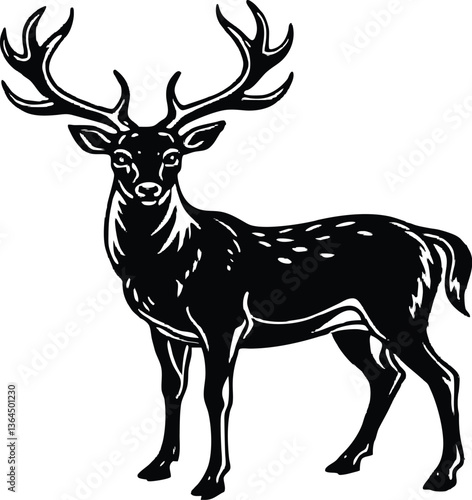 © Noy, Obraz premium Majestic Deer Silhouette with Large Antlers on White Background