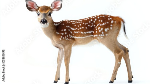 © julija, Naklejka premium majestic deer standing gracefully against a pristine white background, highlighting its elegant features and natural beauty, perfect for wildlife illustrations or educational materials