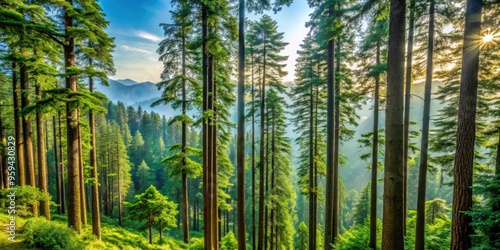 Naklejka premium Majestic deodar trees towering in a lush forest setting, Cedar, Deodar,...