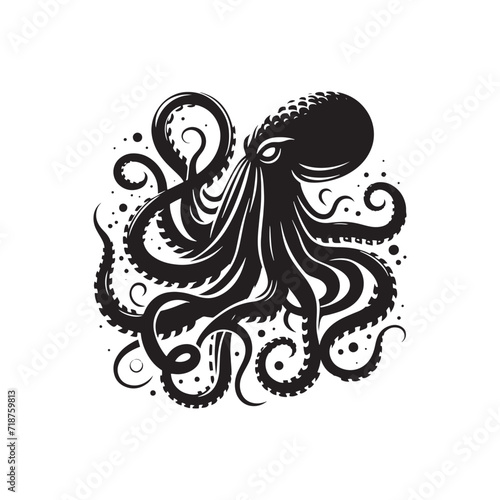 Obraz premium Majestic Depths Unleashed: A Gallery of Kraken Silhouettes Emanating Oceanic Grandeur - Kraken Illustration - Sea Monster Vector Illustration - Kraken Vector