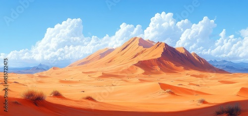 © Muamanah, Naklejka premium Majestic Desert Landscape Under a Sky of Puffy Clouds
