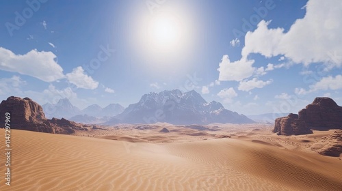 © Matcha_09, Naklejka premium Majestic Desert Landscape Under Bright Sky with Distant Mountains