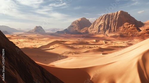Naklejka premium Majestic Desert Landscape with Sand Dunes and Mountain Formations