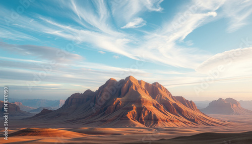 © realaji, Naklejka premium Majestic Desert Mountain Range Under a Vast Sky
