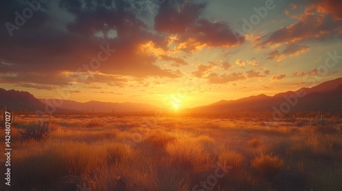 © abdul kahfi, Fototapeta premium Majestic Desert Sunset: Arizona's Golden Hour