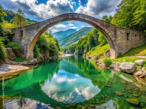 © Curie, Fototapeta premium Majestic Devil's Bridge, Chienti River, Italy - Panoramic View