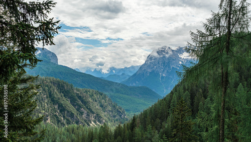 Obraz premium Majestic Dolomites: Summit Views from the Lago di Sorapis Trail