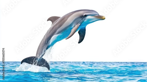 © ADD PHOTO, Naklejka premium Majestic Dolphin Leaping out of Turquoise Ocean Waves in Tropical Paradise