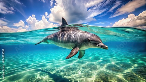Obraz premium Majestic dolphin swimming gracefully in the crystal clear ocean waters,...