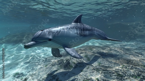 Fototapeta premium Majestic Dolphin Underwater: A Serene Ocean Encounter