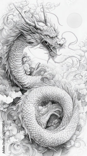 Obraz premium Majestic Dragon Ascending Through Cloudscape