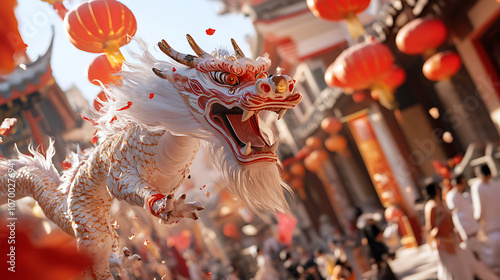 © sheralabel, Naklejka premium Majestic Dragon Dance Performance