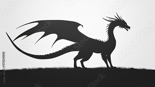 © Ariestia, Fototapeta premium Majestic Dragon Silhouette Against Simple Background