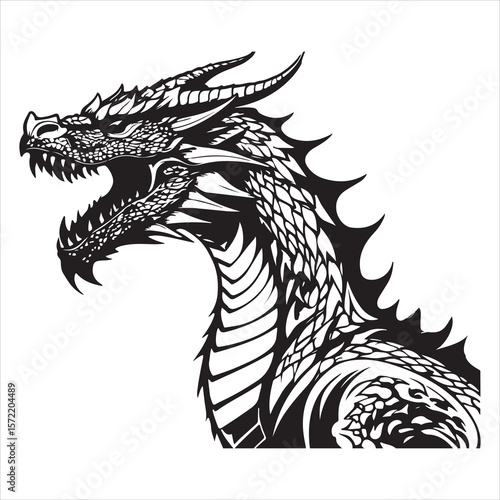 © Bemu, Obraz premium Majestic Dragon Silhouette - Minimalist Black Vecto