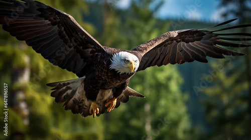 Obraz premium Majestic eagle captured soaring over a lush forest