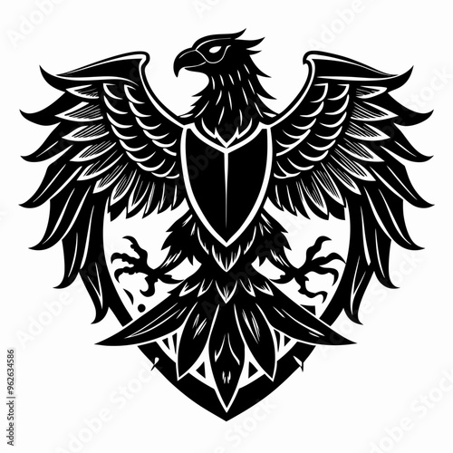 © inspiring , Obraz premium Majestic Eagle Emblem in Monochrome Heraldic Style with Intricate Details