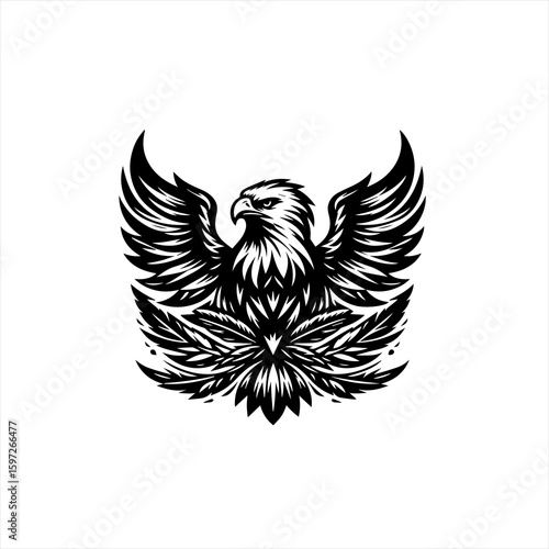 © shofiullah, Obraz premium Majestic Eagle Emblem with Stylized Wings and Feathers.