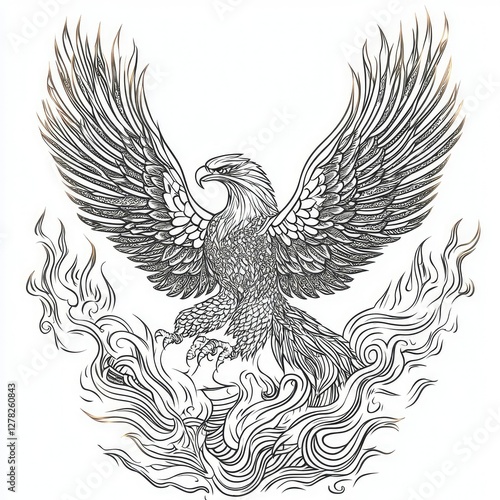 Obraz premium Majestic Eagle in Flames Intricate Line Art Design