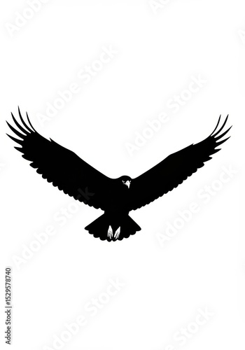 © Tida, Naklejka premium Majestic Eagle in Flight - A striking black silhouette of an eagle with wings spread wide, soaring gracefully against a white background