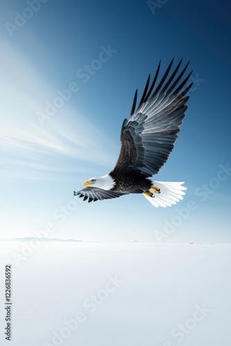Fototapeta premium Majestic Eagle in Flight Against Blue Sky