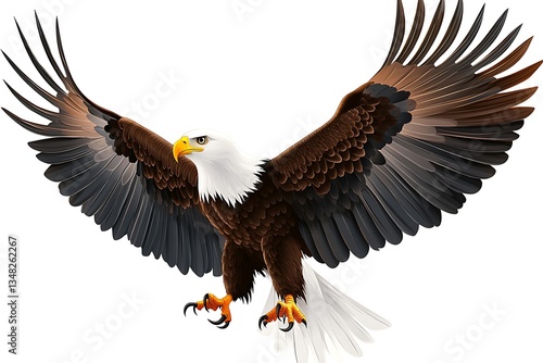 Obraz premium Majestic Eagle in Flight against White Background. Possible use Educational,...