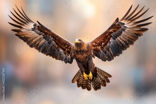© WinThing, Obraz premium Majestic eagle in flight, showcasing its powerful wings and sharp features.