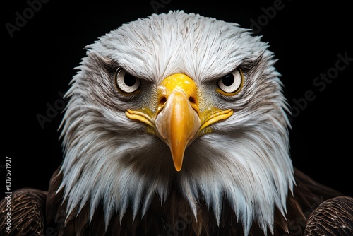 © JK_kyoto, Fototapeta premium Majestic Eagle in Focus with Intense Gaze and Striking Feather Detail Against Dark Background