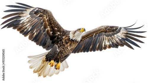 © Bussakon, Obraz premium Majestic Eagle in Mid Flight Isolated on White Background with Detailed Feathers and Powerful Presence