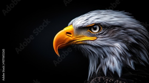 © khonkangrua, Obraz premium Majestic Eagle in Profile Against Dark Background