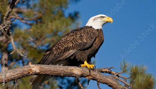 © Kagami, Obraz premium Majestic eagle perched on branch