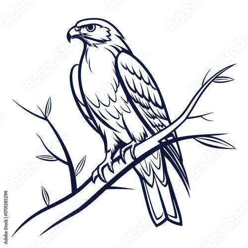 © Alim bd, Fototapeta premium Majestic Eagle Perched on Branch Illustration