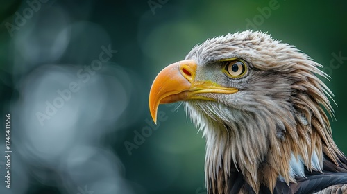 © Tina, Obraz premium Majestic eagle portrait showcasing sharp features and vibrant colors against a blurred green background