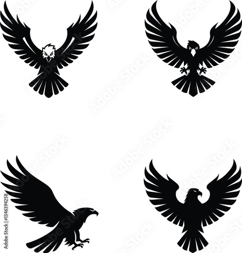 © Sakhawat_Design, Fototapeta premium Majestic Eagle Silhouette Logo Bundle – Wings Wide Open Bold & Powerful Design