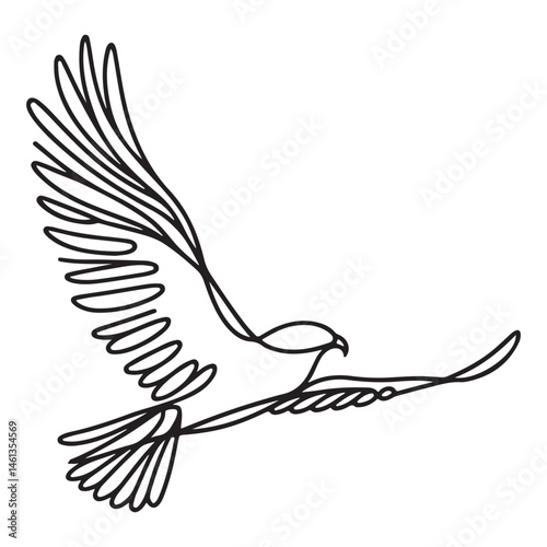 © Creative Image , Obraz premium Majestic Eagle Silhouette Soaring with Open Wings Line Art Design