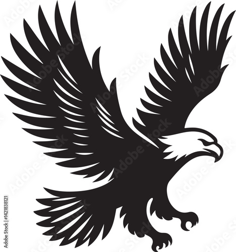 Fototapeta premium Majestic Eagle Silhouette Vector – Flying Pose with Wide Wings on White Background