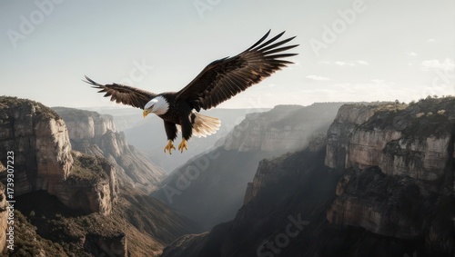Fototapeta premium Majestic eagle soaring above a deep canyon