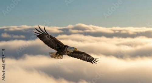 Obraz premium Majestic eagle soaring above a sea of clouds at sunrise