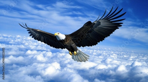 © Erisna Yolanda, Obraz premium Majestic eagle soaring above fluffy clouds